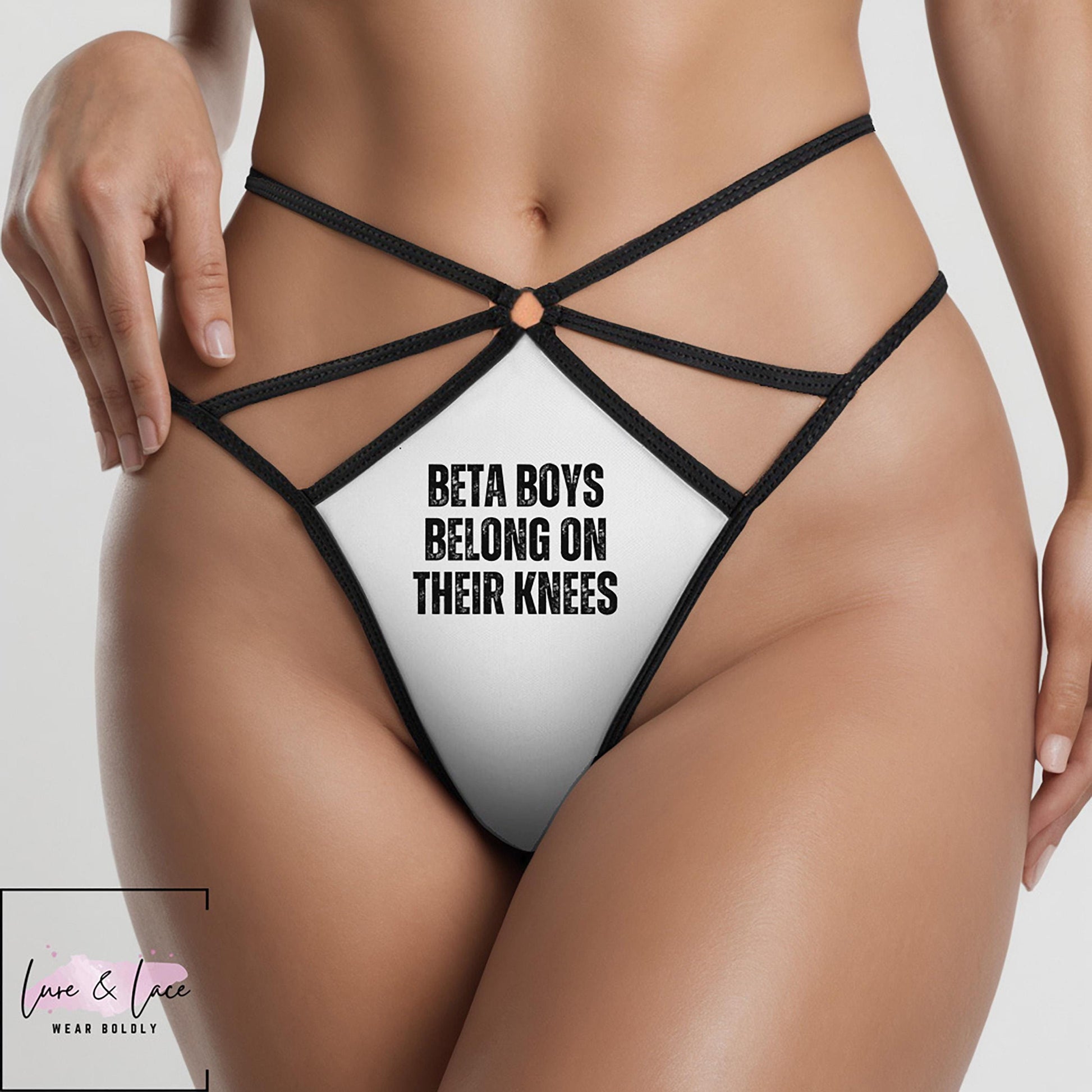 BETA Boys Belong ON THEIR Knees Sexy Strappy Thong, Domme G-String, Naughty Lingerie Panties, Hotwife Lifestyle, Queen of Spades