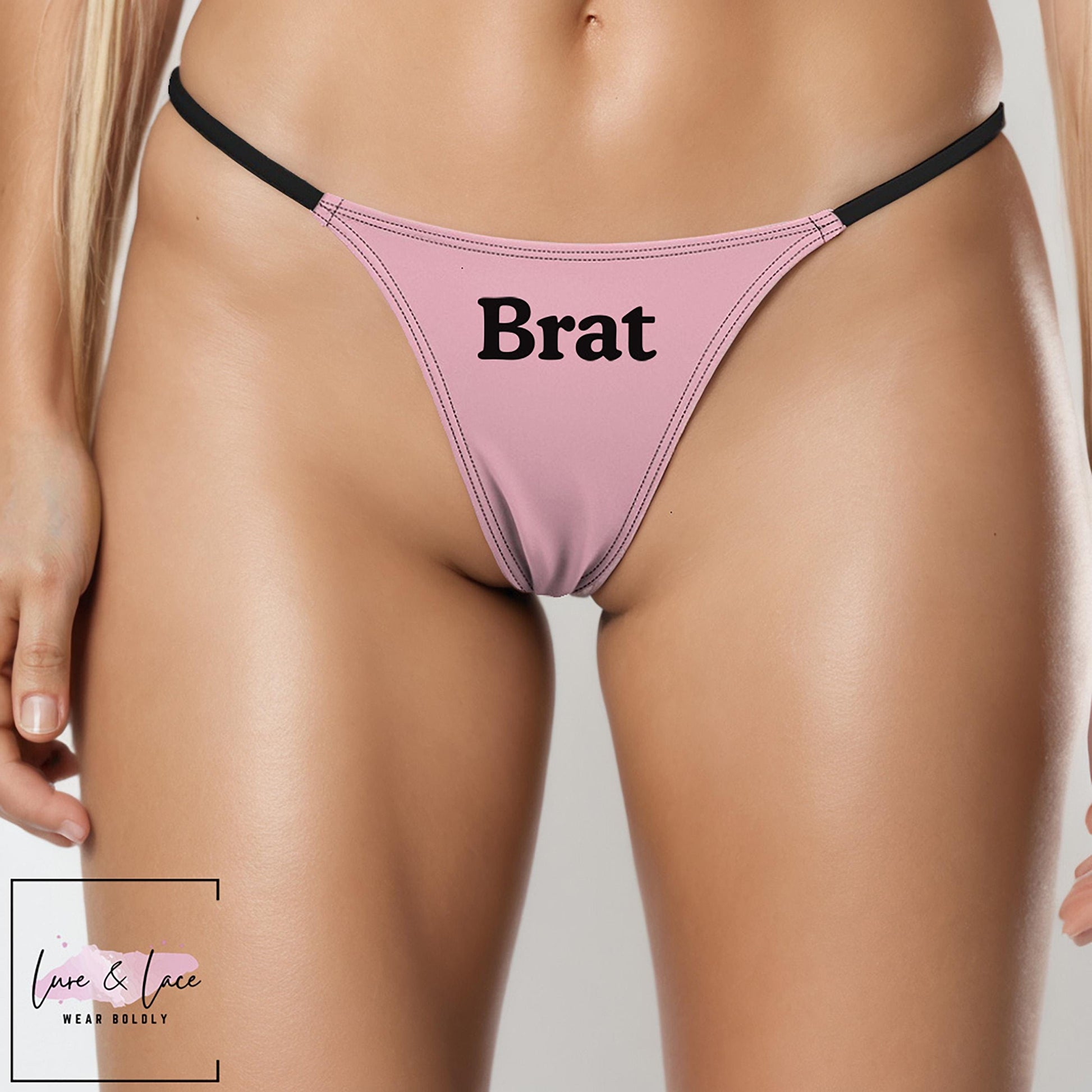 Brat Sexy Thong Submissive G-String, Dub Dom Naughty Lingerie Panties, Date Night Underwear