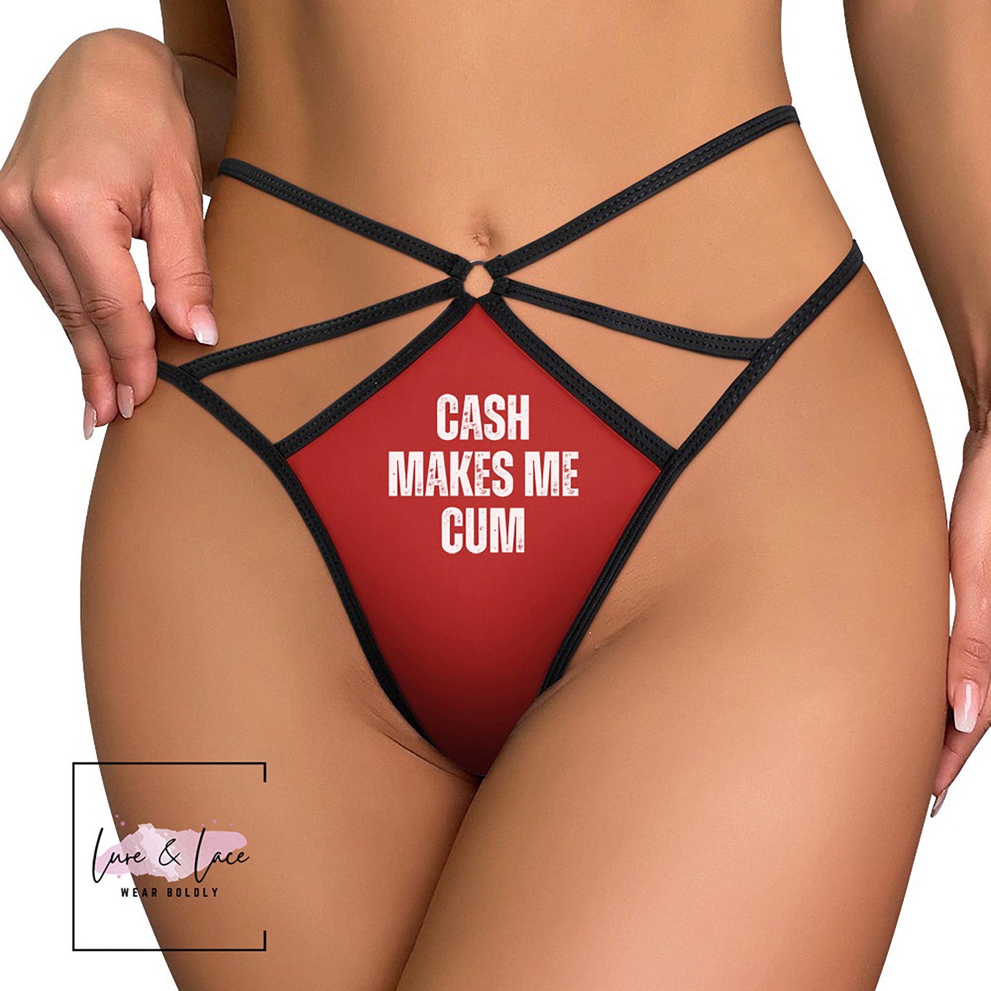 Cash Makes Me Cum mouth Sexy Strappy Thong, Findom Onlyfans G-String, Naughty Lingerie Panties, Date Night Underwear