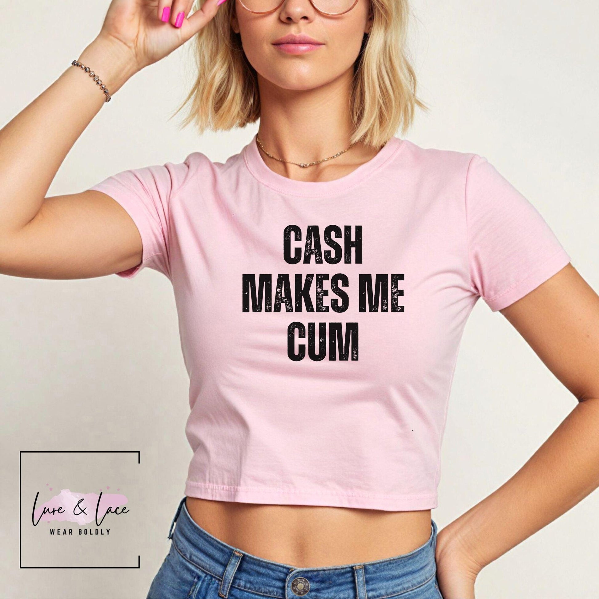Cash Makes Me Cum Y2K Sexy Cute Baby Tee Crop Top, Findom Femme Naughty Apparel