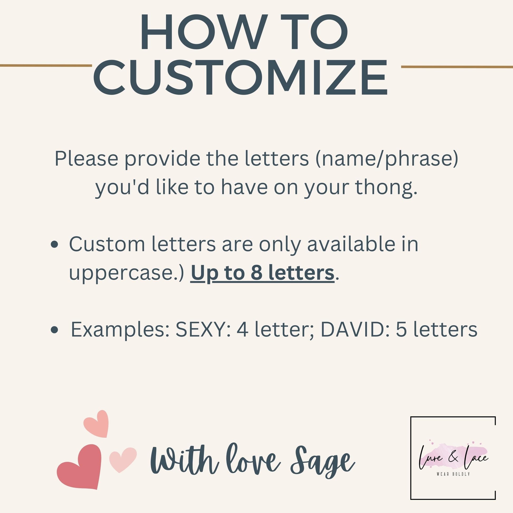 2.Provide the letters you’d like to customize up to 8 letters ( it will come in uppercase)