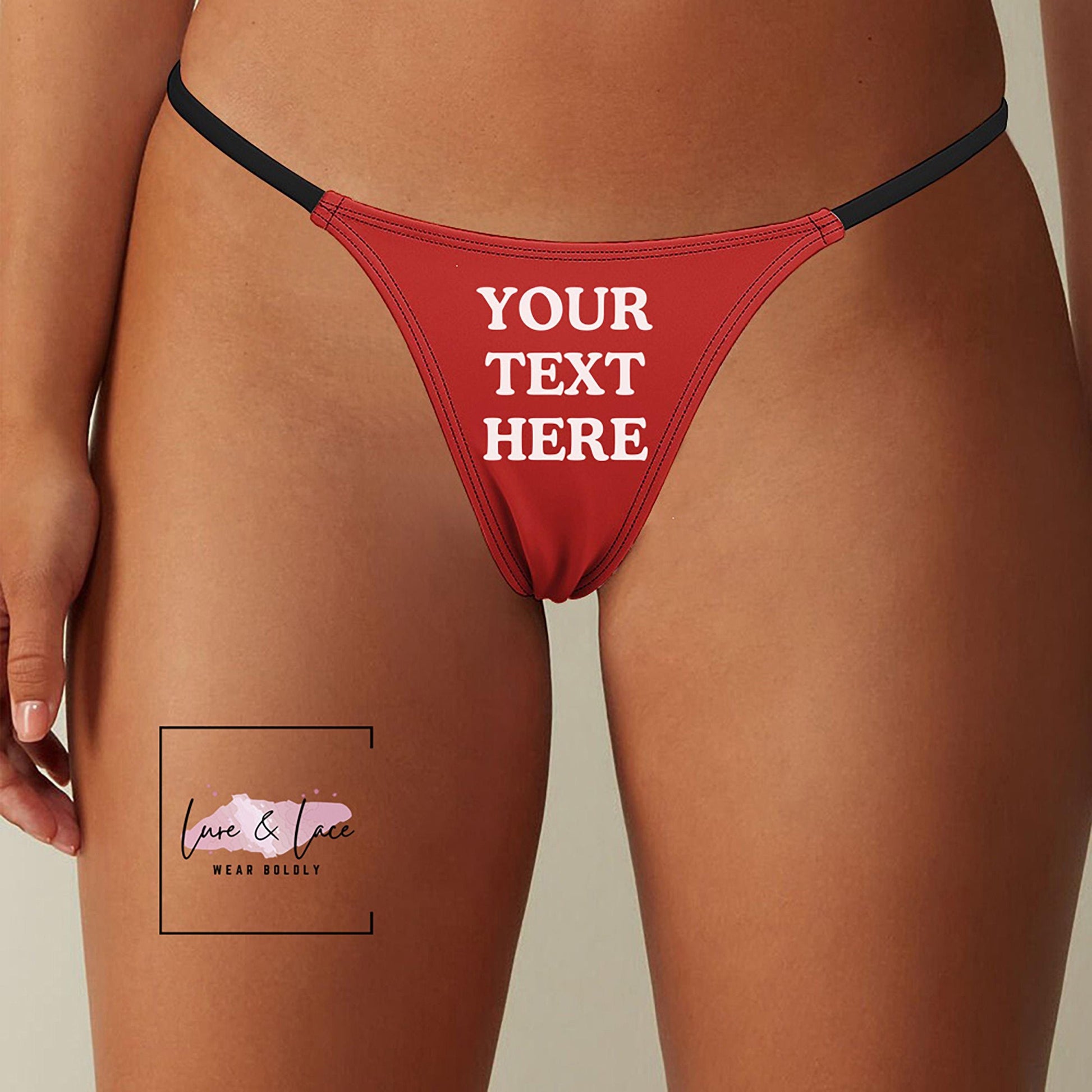 Custom Text Image Sexy Thong G-String, Personalized Naughty Lingerie Panties, Date Night Underwear