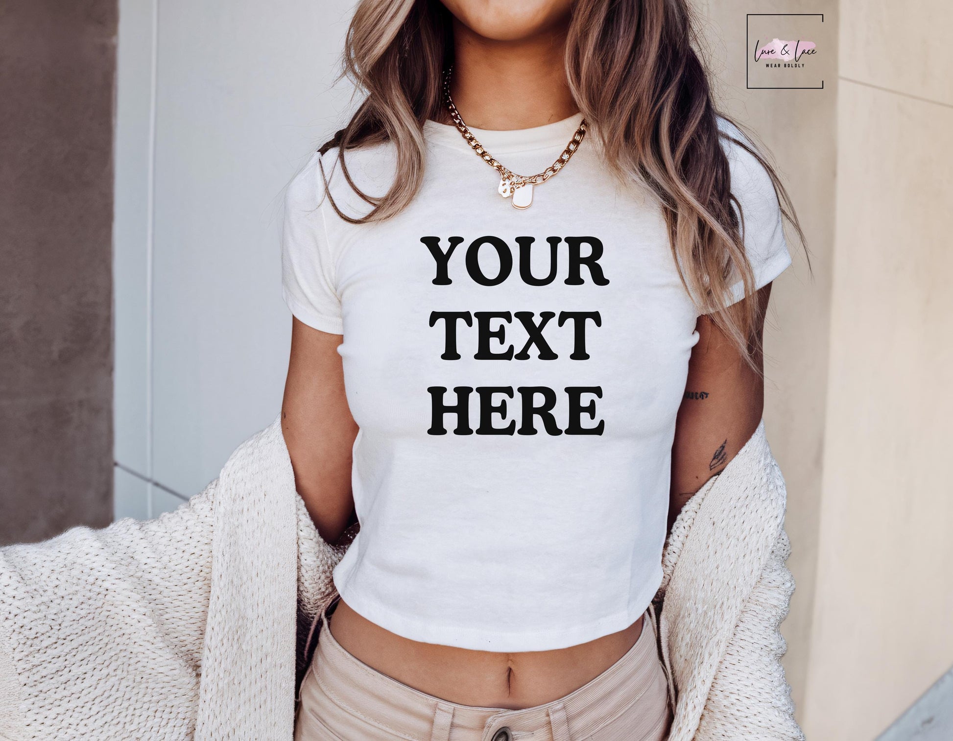 Custom Text Y2K Sexy Cute Baby Tee Crop Top, Personalized Naughty Apparel, Date Night Idea Apparel