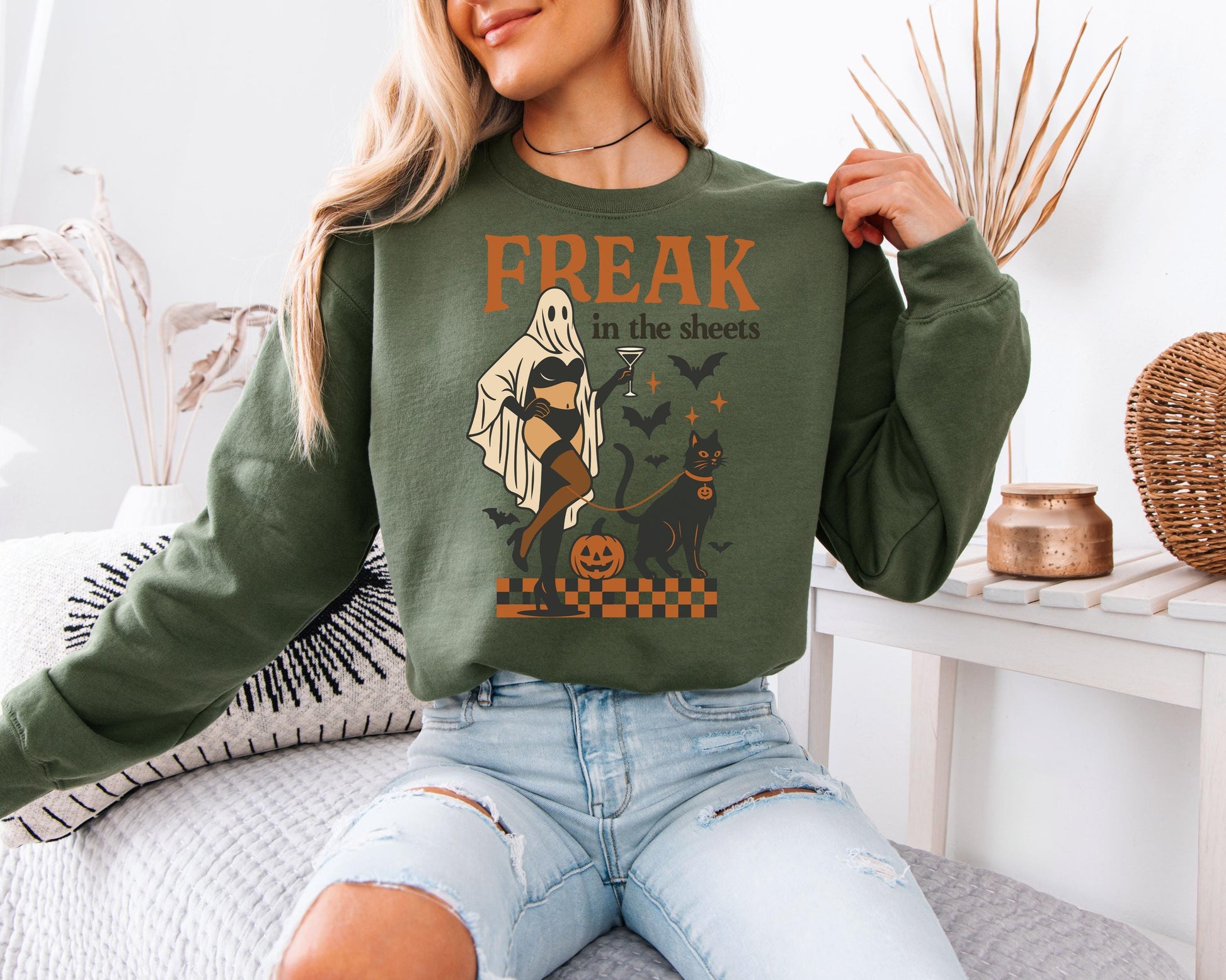 Freak in the sheets Halloween Retro Sweatshirt, Sexy Sweater Funny Spooky Ghosts