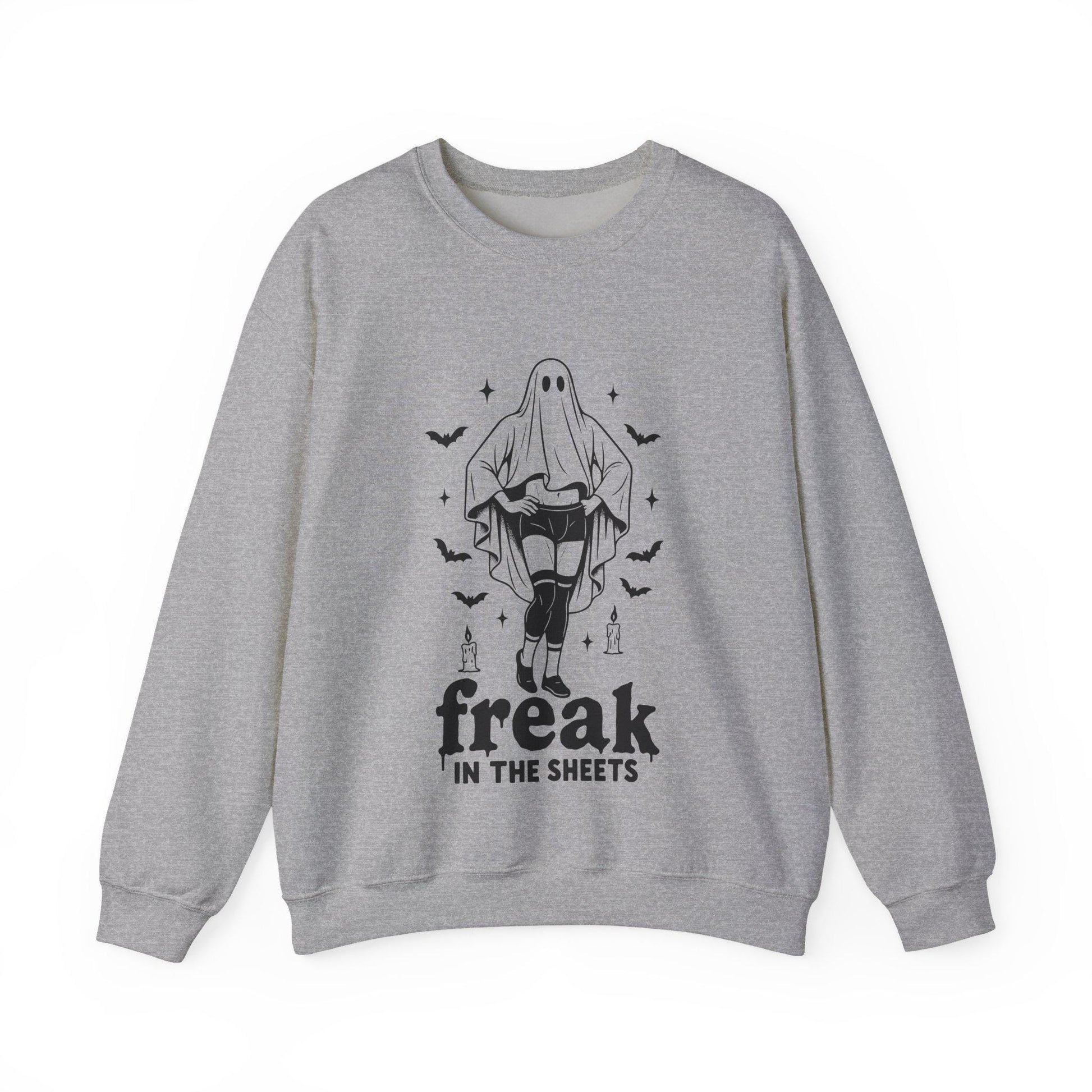 Freak In the Sheets Halloween Sweatshirt, Sexy Sweater Funny Spooky Ghosts