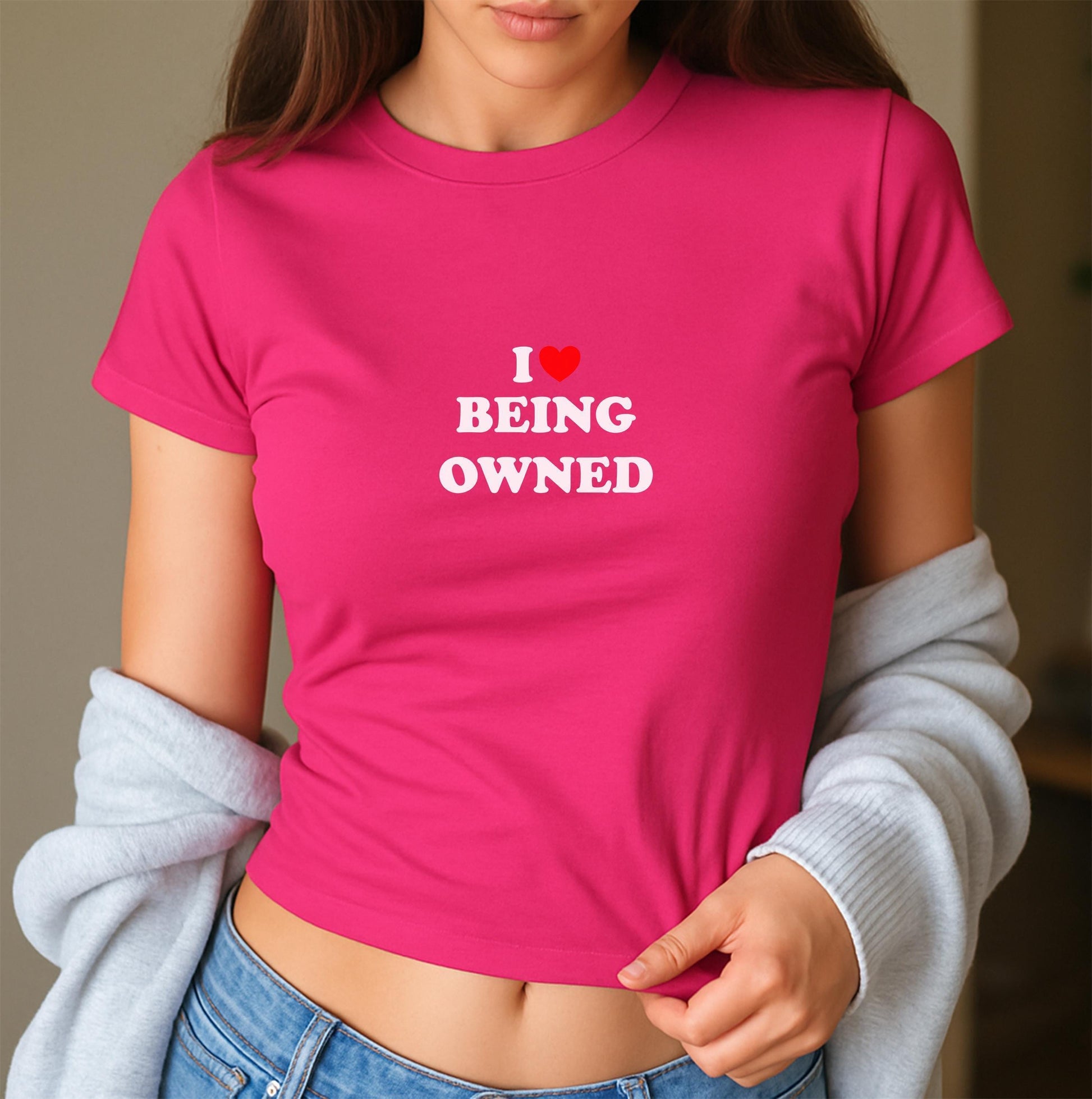 🖤 I LOVE BEING OWNED – Y2K Baby Tee Crop Top 🖤