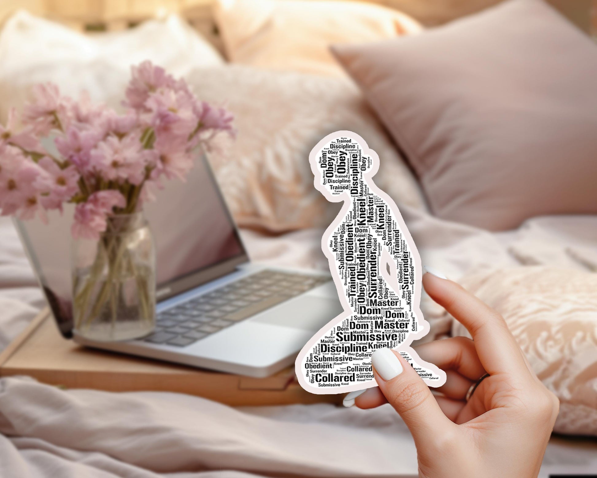 Show off your submissive pride with this beautifully designed Kneeling Submissive Word Cloud Sticker, a bold tribute to the power of vulnerability, obedience, and self-awareness within the BDSM lifestyle. Whether you're a proud submissive, exploring kink, or looking for the perfect gift for your dom/sub dynamic, this powerful visual piece is both aesthetic and deeply symbolic.