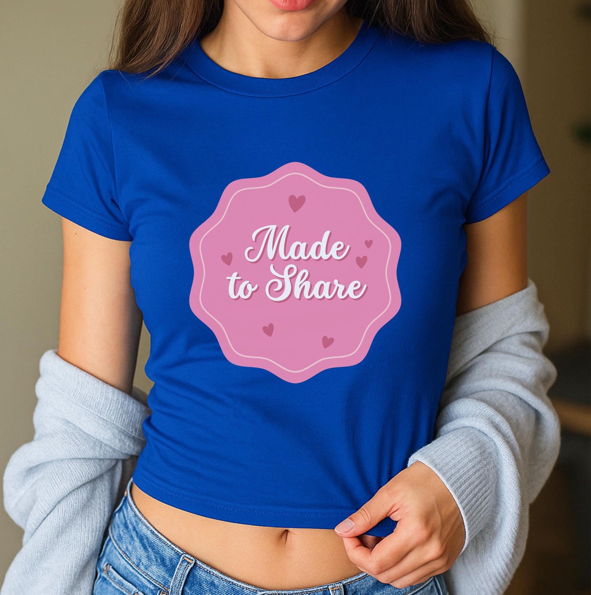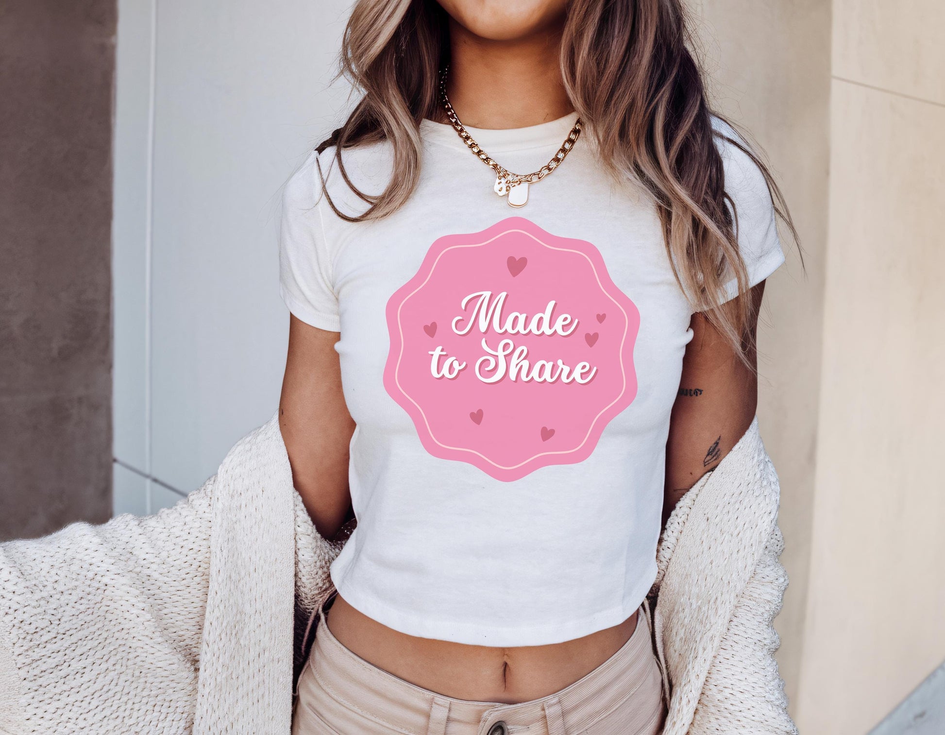 Made from high-quality, soft cotton fabric, this t-shirt offers all-day comfort with a flattering fit. The vibrant pink design features a charming “Made to Share” graphic with hearts, adding a playful touch to your wardrobe. Perfect for casual outings, themed parties, or intimate moments, this tee is a versatile addition to any sexy, flirty, and empowering wardrobe.
