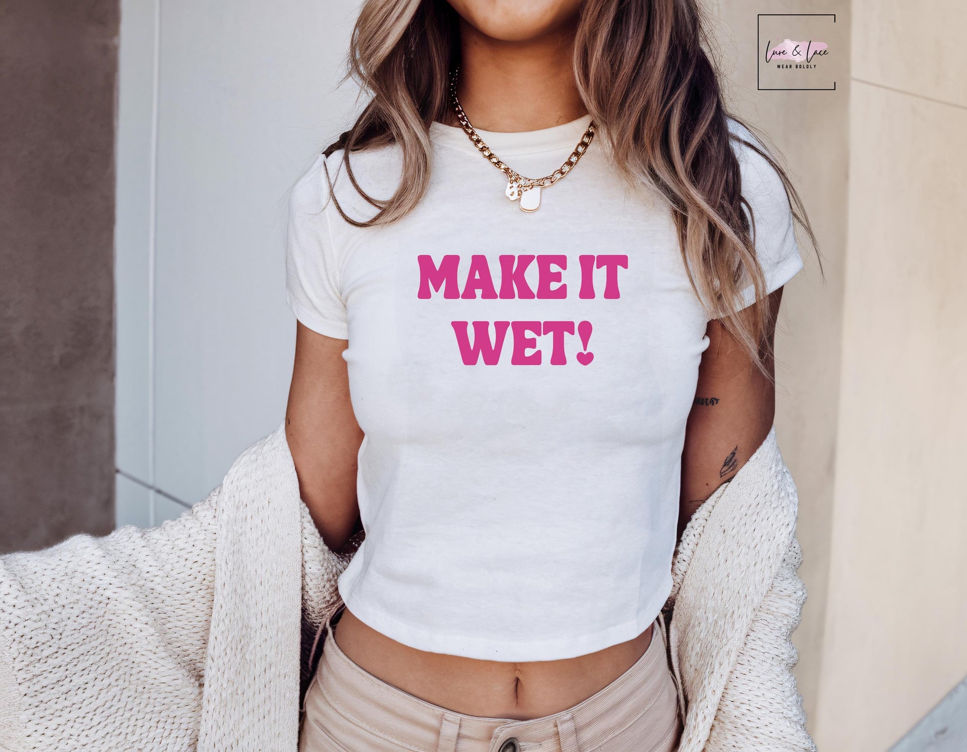 Make it Wet Tshirt Sexy Y2K Cute baby Tee, aesthetic sexy Gift idea for her, wife, girlfriend, Naughty funny couple shirt, crop top date