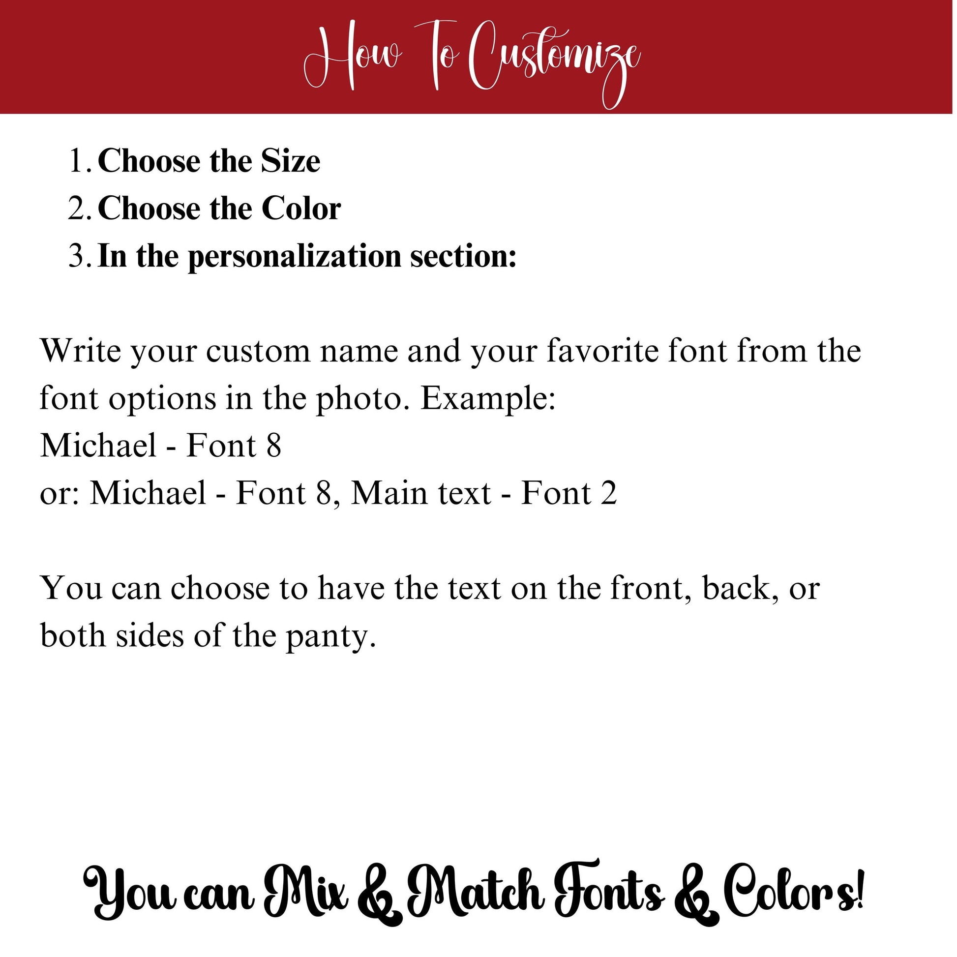 If you like to have any part of the text in different color write it please: Michael- Font 8, name in Red