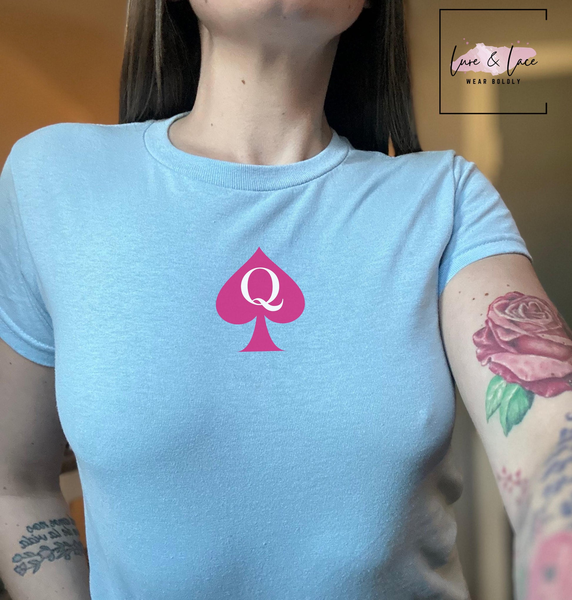 QOS Tshirt Sexy Y2K Cute baby Tee, hotwife lifestyle Queen of Spades aesthetic Gift idea for her, Naughty funny couple shirt, cuck bull date