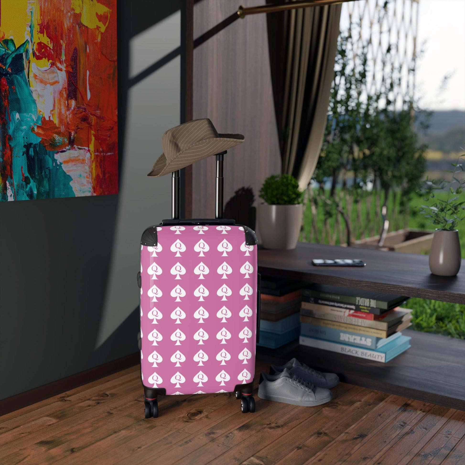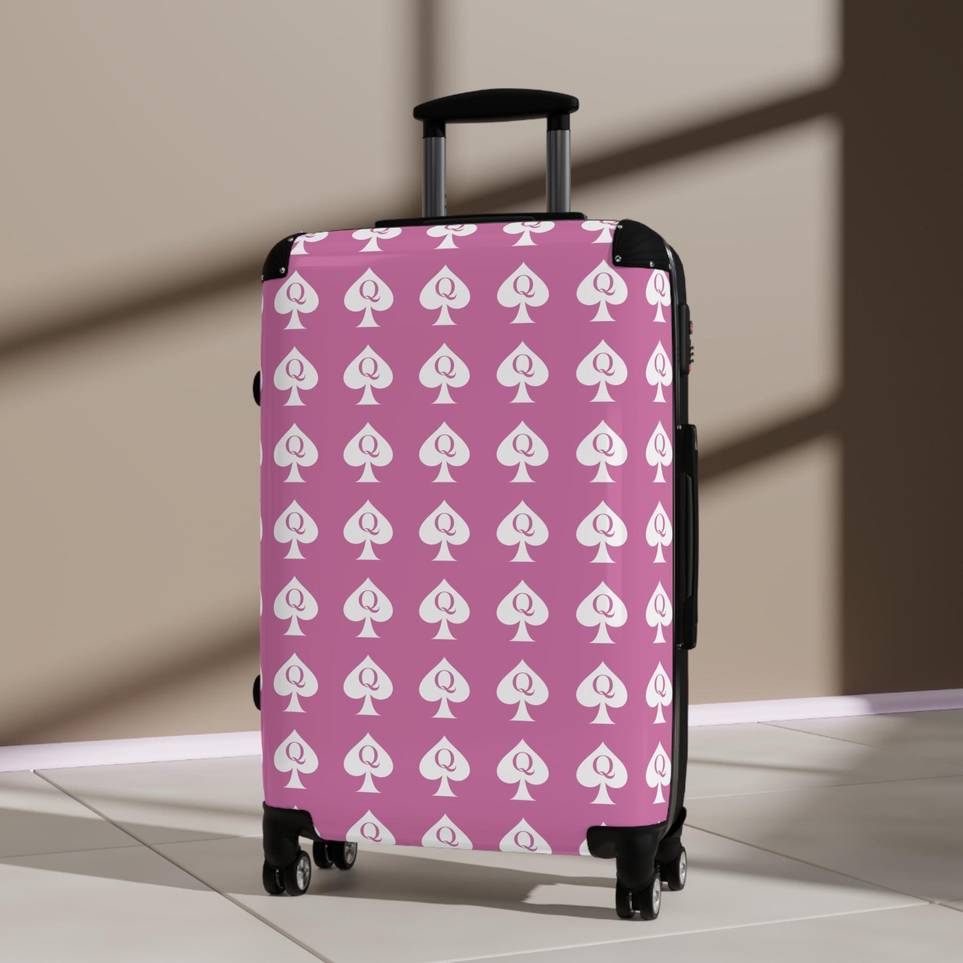 Queen of Spades pink Spinner Suitcase | QOS Lifestyle Luggage, Hotwife Travel, Kinky Swinger cruise Luggage, BBC Pineapple Vacation Bag BDSM