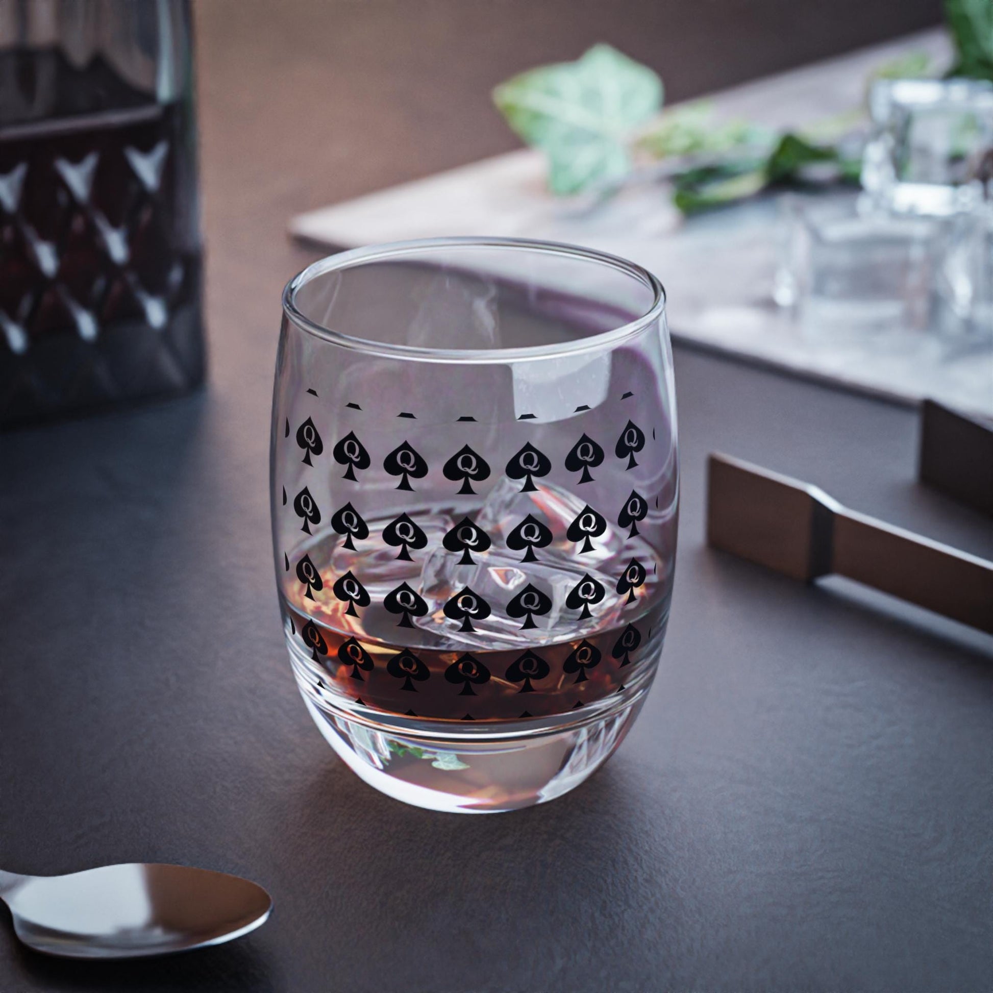 Queen of Spades Whiskey Glass 6oz QOS Hotwife Swinger Cuck Lifestyle Gift for Him Bull Queen Clear Barware Naughty Drink Glass