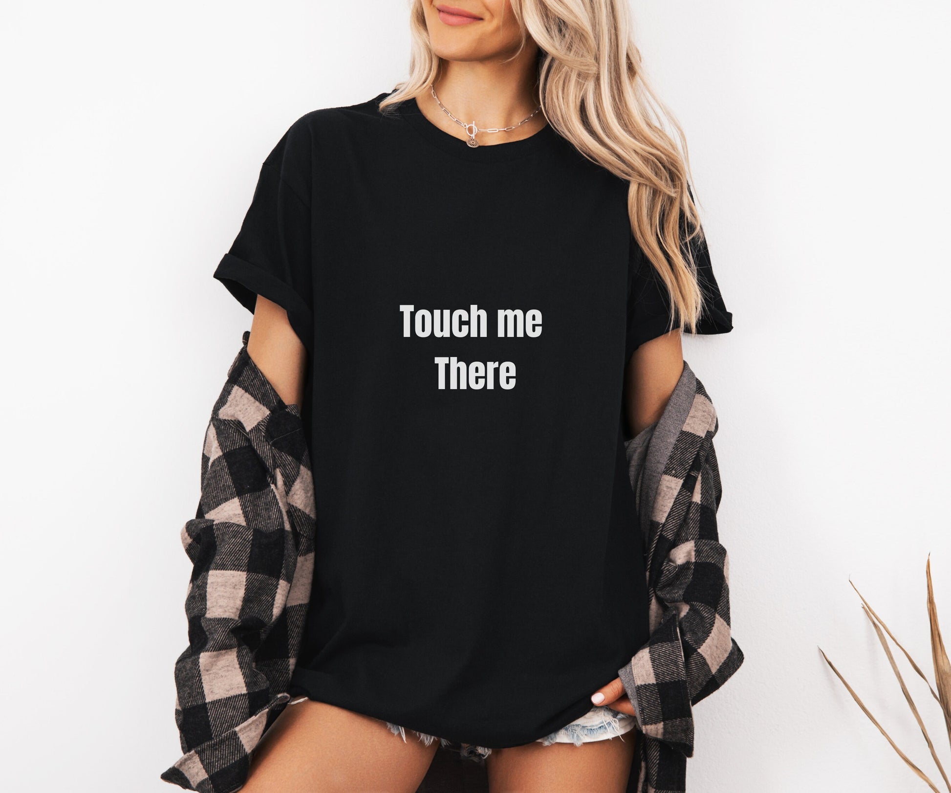 Spice up your wardrobe or gift the ultimate fun piece with our T-shirt featuring the cheeky "Touch Me There" graphic. Perfect for bachelorette parties, flirty nights out, or as a playful surprise for a friend, this tee is designed to make a bold statement! Whether you're turning heads or bringing some sexy fun to an event, this tee adds the perfect flirty touch. Available in a variety of sizes and colors, it’s great for adding a little sass to your wardrobe or giving a memorable, naughty gift.