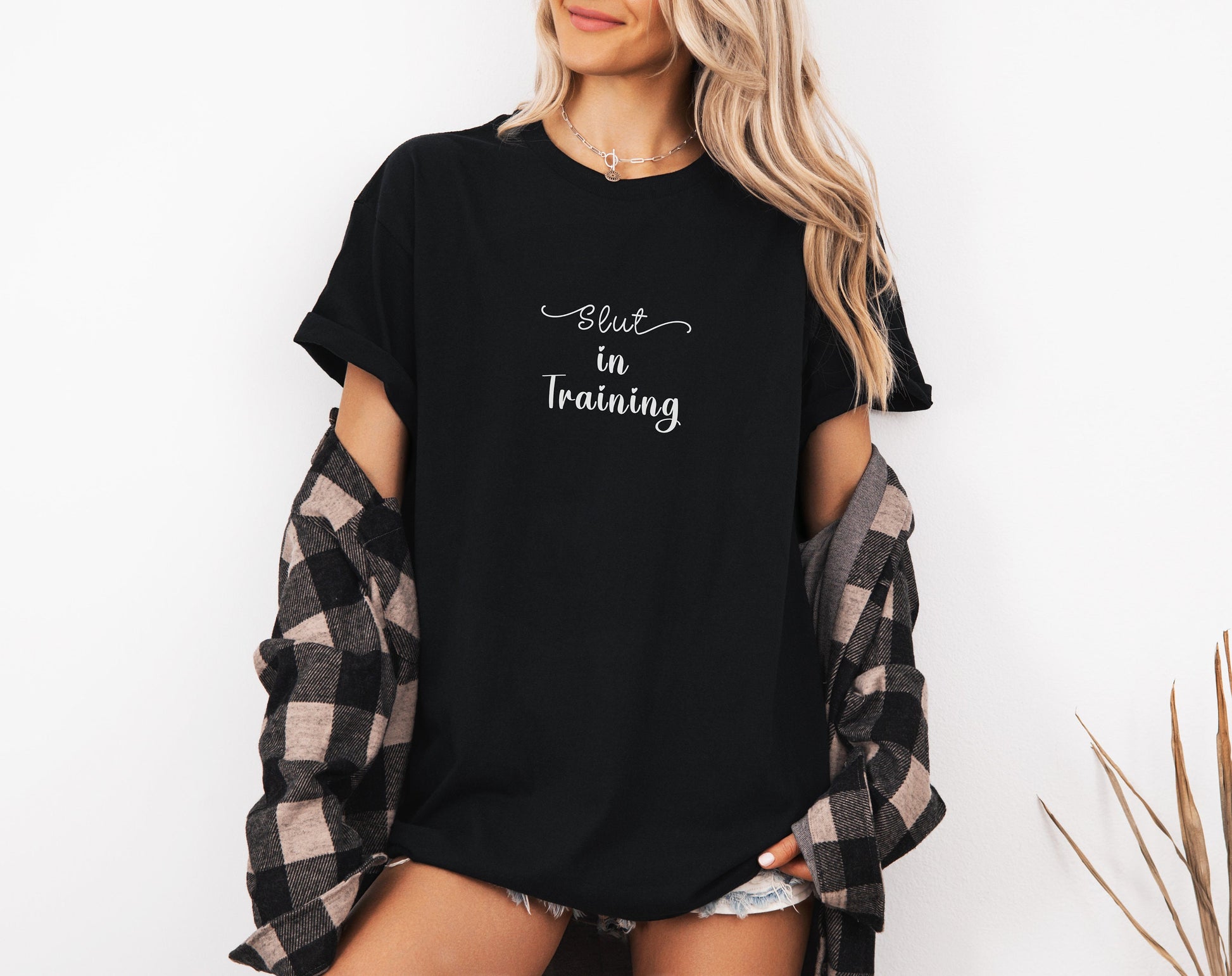 Slut in Training Tshirt, Naughty Tshirt for fun, Gag Gift, Adult Humor T-shirt, MILF hotwife Shirt, naughty gift for her, Bachelorette
