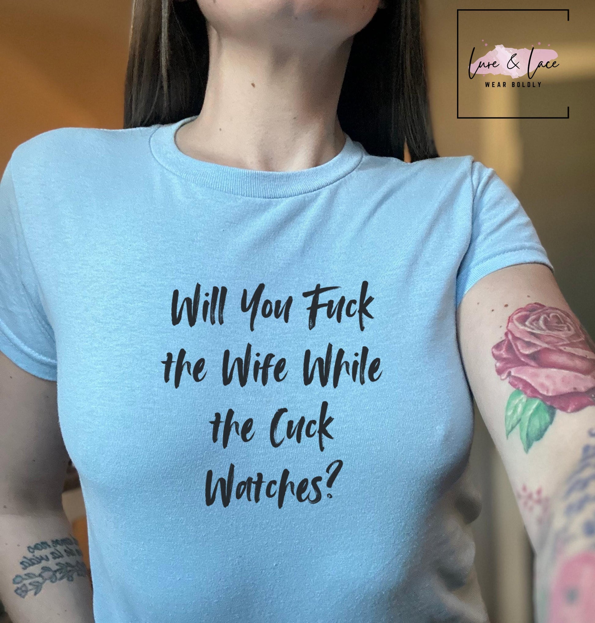 Will You Fuck the Wife While the Cuck Watches Y2K Sexy Cute Baby Tee Crop Top, Naughty Apparel Queen of Spades Swinger