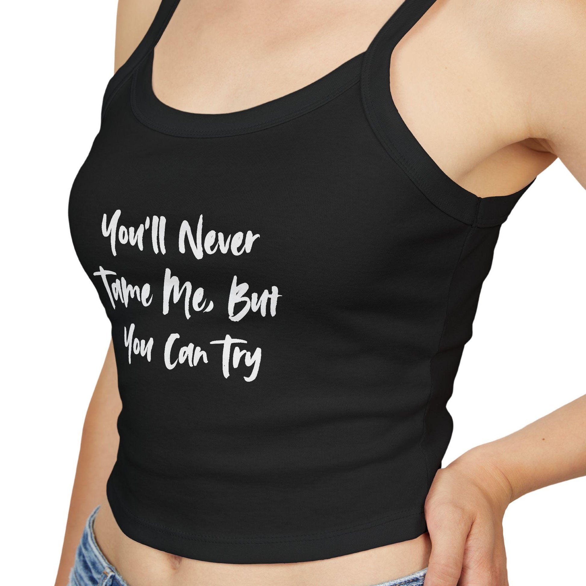 Youll Never Tame Me, But You Can Try, Bratty Spaghetti strap crop top, sexy Gift idea for her, wife, girlfriend, Naughty couple shirt