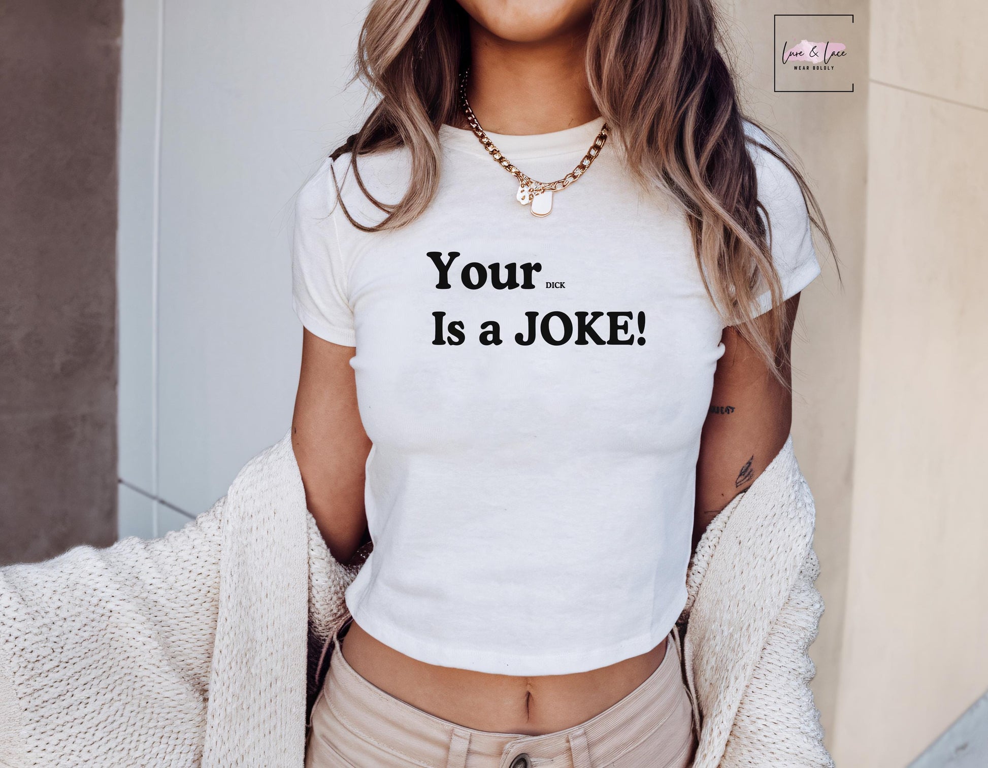 Your dick is a joke Y2K Sexy Cute Baby Tee Crop Top, Naughty Apparel Queen of Spades Swinger