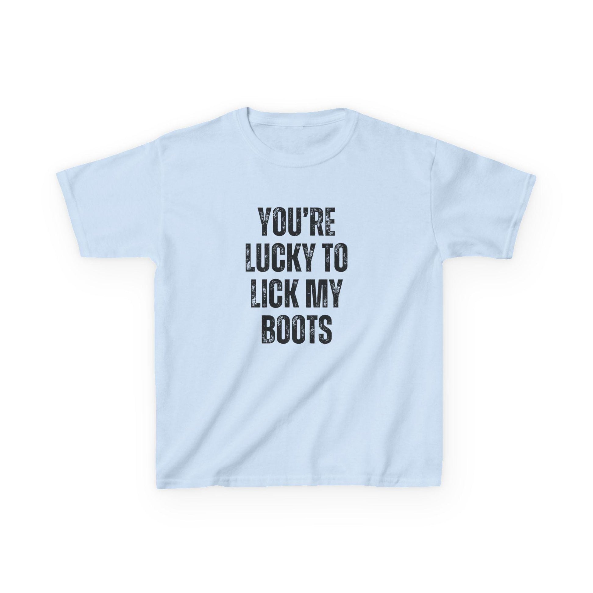 You're Lucky to Lick My Boots Y2K Sexy Cute Baby Tee Crop Top, Femme Dominatrix Domme