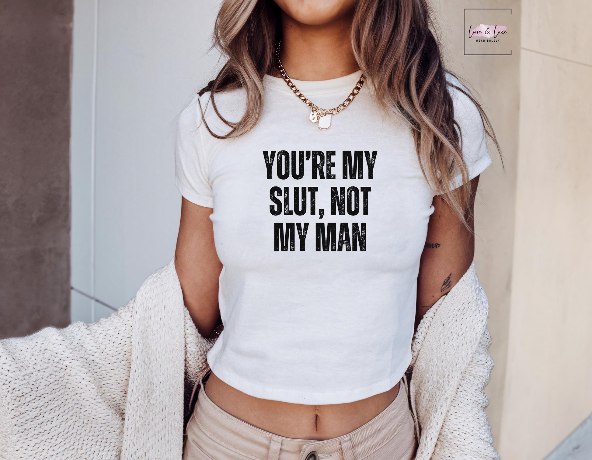You're My Slut, Not My Man Y2K Sexy Cute Baby Tee Crop Top, Naughty Apparel Queen of Spades Swinger